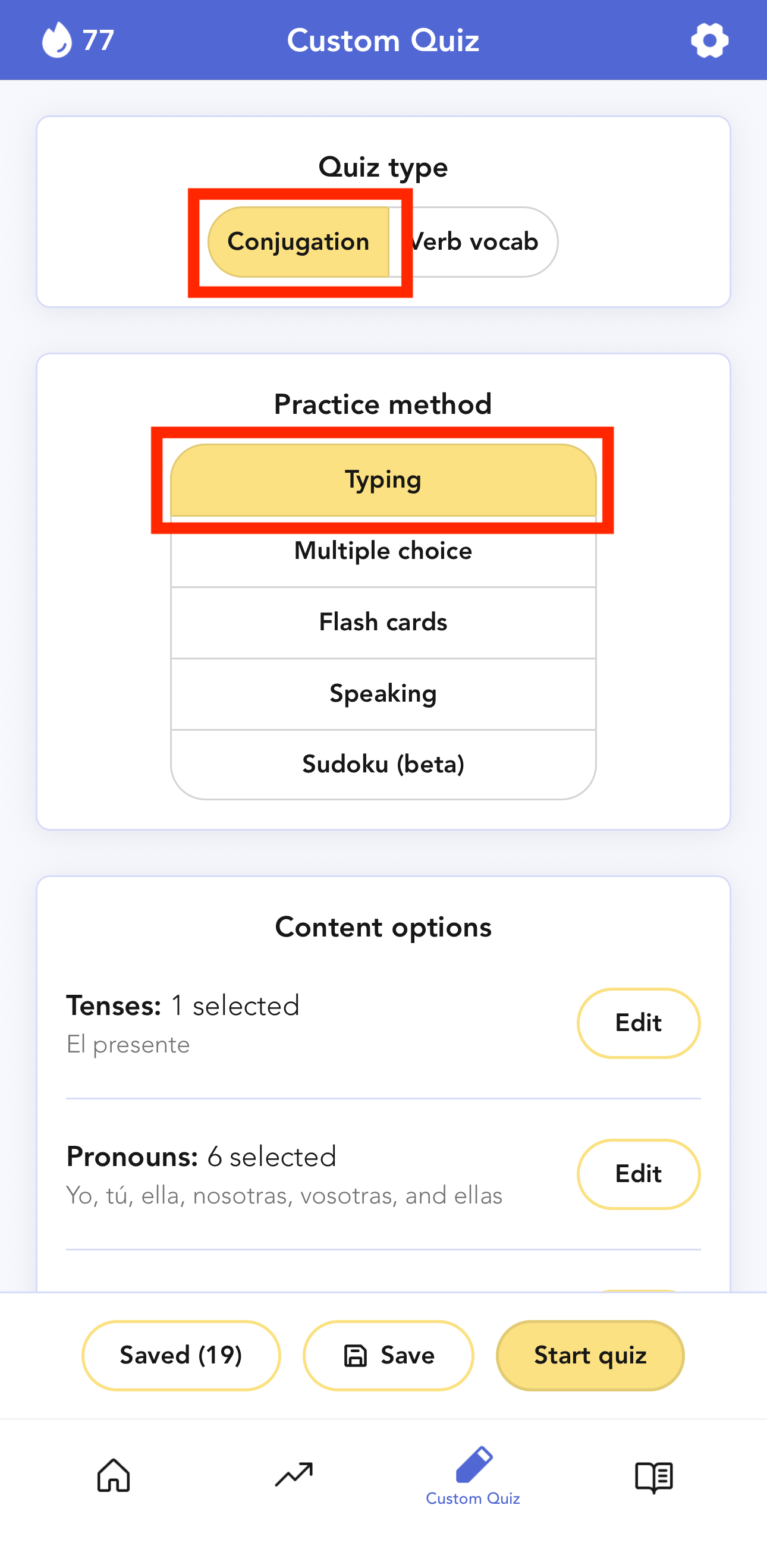 - Quiz type: Conjugation