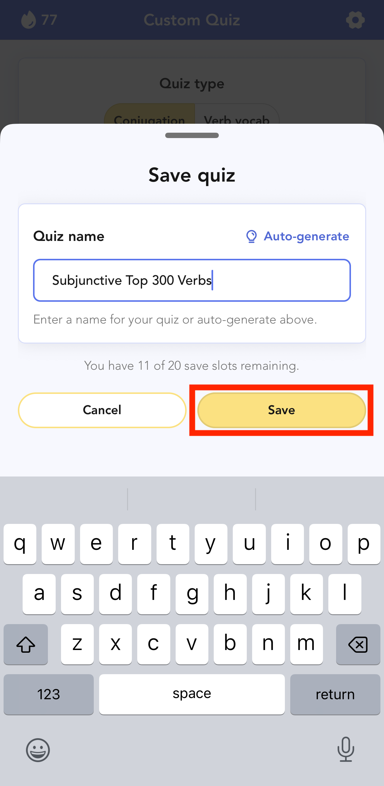 Tap "Save", then give your quiz a unique name and tap "Save" again.